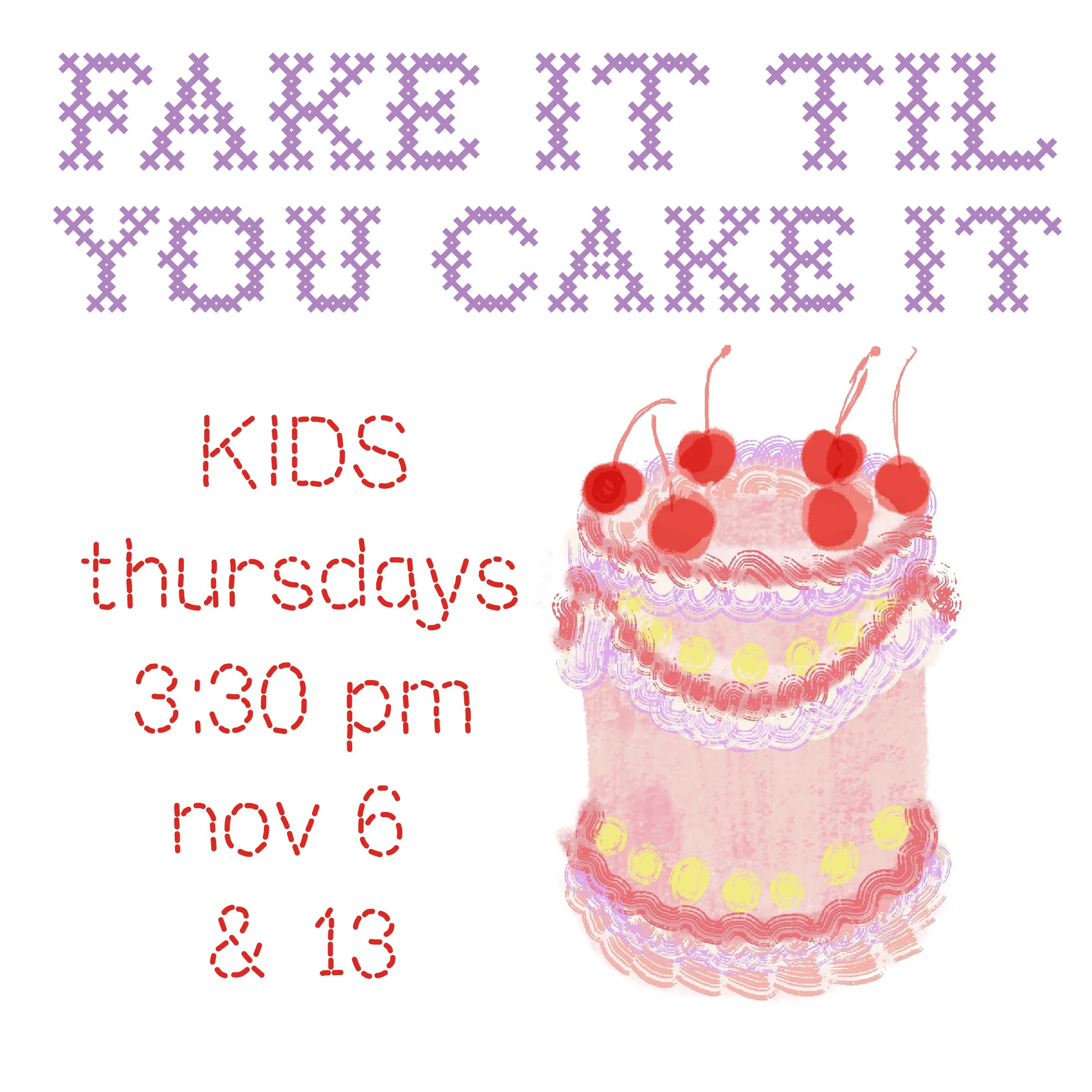 In this two week workshop, students will make fake CAKE out of CLAY! The first week will be spent handbuilding. We will experiment with applying liquid clay using a variety of frosting tips to add flare to their work. The second week will be spent glazing. Work will be ready for pick up within 2 weeks after the final class.